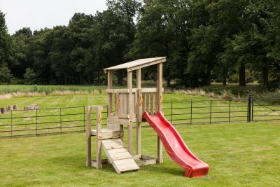 The slides can be straight, wavy, tubular or spiral. There is a significant price difference but the straight and wavy slides are the most popular for their price and the fun they provide, plus you can always see your children whilst they are using them. If you are looking for a den, you can have playhouses on platforms or some climbing frames that come with playhouse modules to enclose the bottom of the platform to have a playhouse at ground level. Other options for the bottom of the towers are sandpits, super popular with toddlers, and can keep them busy for hours!
