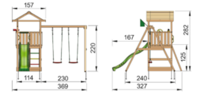 If you have space, then a play tower with slide and swings is the basic equipment that will provide hours of fun. Make sure you select the platform height that is right for your children. If you choose a platform that is too low, the children will outgrow it quickly. Generally, you can find platforms at 60cm, 90cm, 120cm and 150cm from the ground. The higher the platform, the longer the children will be interested in it. There are towers with different platform heights that last for years, always keeping the children interested and are also ideal for grandparents who will have grandchildren of different ages throughout the years. If your budget and space allow it, you can have more towers joined together by a bridge.