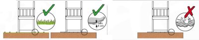 There are other surfaces if you cannot have grass or prefer not to use it, such as woodchip, rubber, bonded rubber, wetpour, artificial grass etc. The surface to select depends of different factors, like the height of the platforms and the base you have. Also, those surfaces are quite costly and can cost more than the equipment itself, so always check before designing a space! It will be best to contact the professionals with your surface enquiry so they can advise accordingly.