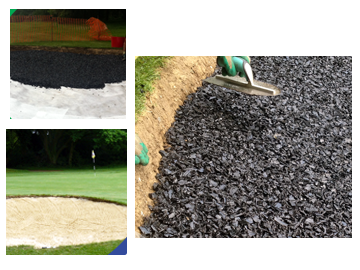 This is a recycled rubber crumb, mixed with a resin binder installed in the base of golf bunkers as a liner, to reduce contamination and maintenance.