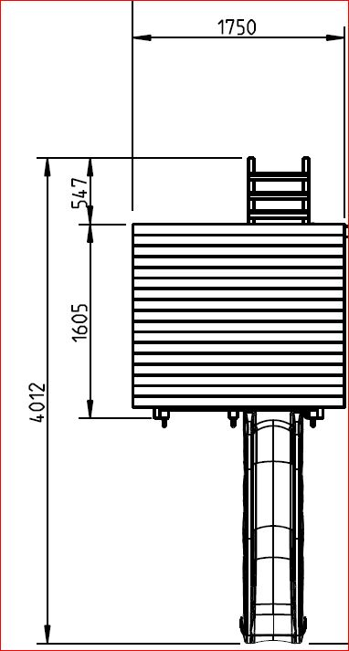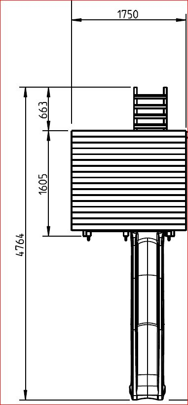 150cm platform height: 3.30m high x 1.30m wide x 4.76m deep