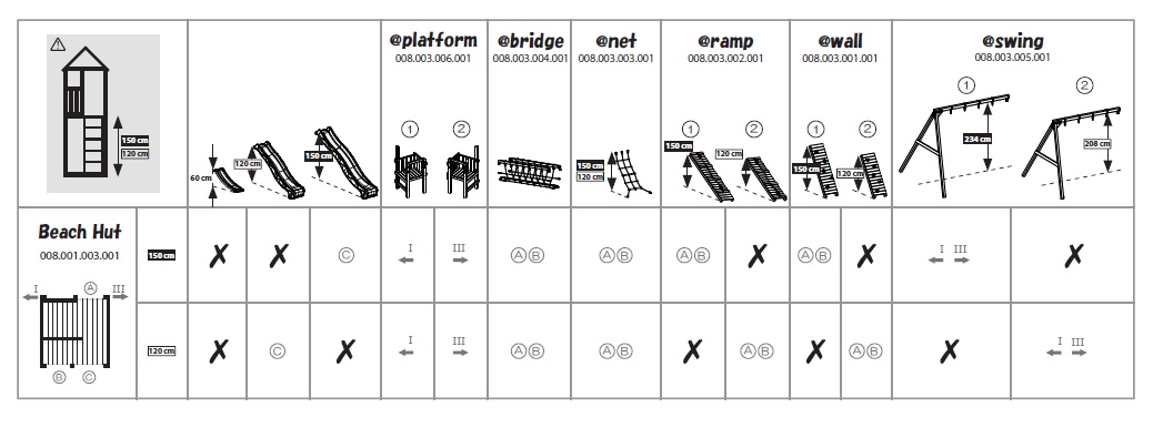 Most play tower models give you a choice of platform height: 1.2 m or 1.5 m in most towers and 60-90/90-120cm on the Cascade.