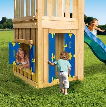 Transform your Jungle Gym tower into a two story play house with window and door.